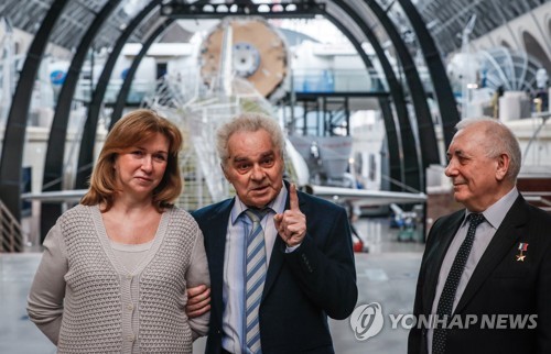 Russian cosmonaut Elena Kondakova (L), Russian cosmonaut Alexander Viktorenko (C) and Russian test instructor of aerospace engineering Viktor Ren (L) attend an open meeting during the project 'Space Lessons' in the Center of Cosmonautics and Aviation at the VDNKH Exhibition of Achievements of National Economy in Moscow, Russia, 04 March 2020. Elena Kondakova was the first female cosmonaut to make a long flight into the orbit. She made two flights to orbit, having spent a total of 178 days at the 'Mir' space station. EPA/YURI KOCHETKOV