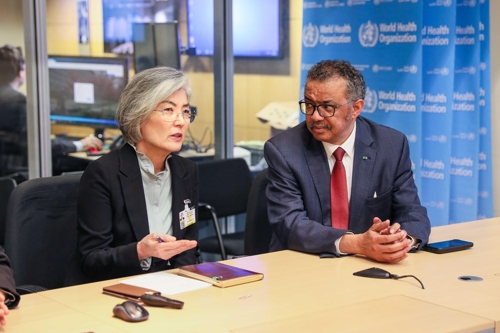 외교부에 따르면 강 장관은 이날 스위스 제네바 WHO 본부에서 테워드로스 아드하놈 거브러여수스 사무총장을 만나 한국의 코로나19 발생 현황과 범정부 대응 현황을 설명했다.