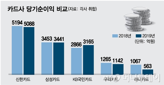 [머니투데이 김세관 기자] [대형 카드사 실적 선방, KB는 10%↑···수수료 의존 하나, 47%↓]