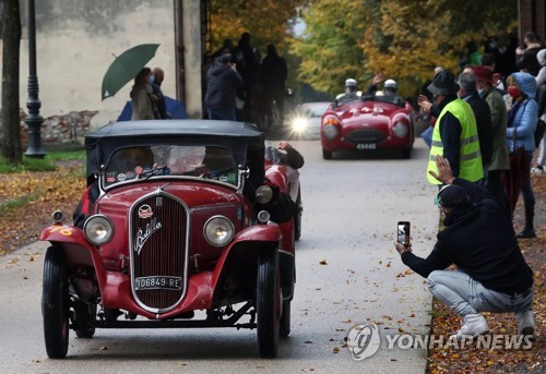 Federico Maria Pizzoccheri in a Fiat 508 S Balilla Sport Coppa d'oro takes part in the 'Mille Miglia' vintage car rally's third stage as they pass in Lucca, Italy, 24 October 2020. The classic Mille Miglia (1,000 Miles) is a race from Brescia to Rome and back. EPA/FILIPPO VENEZIA