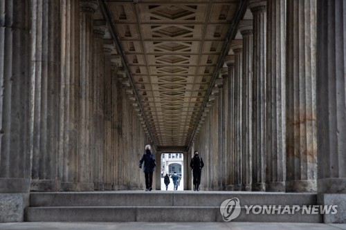 People walk through the colonnaded courtyard of the New Museum (Neues Museum) and the Old National Gallery (Alte Nationalgalerie) on the Museum Island (Museumsinsel) in Berlin, Germany, 21 October 2020. On 03 October, at least 70 artworks and antiques were damaged by unknown perpetrators. The police and museums have remained silent until 20 October, German media Deutschlandfunk (DLF) and Die Zeit made public. EPA/HAYOUNG JEON